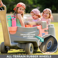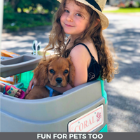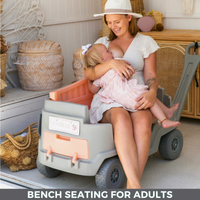 Not only is our wagon approved and certified to carry 4 children safely, but we also offer innovative features that adults will enjoy too: like a built-in cooler, bench seating, heavy-duty weight capacity, built-in Bluetooth and much more.