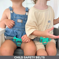 We offer safety belts for peace of mind so children are securely seated and we also offer cushion chairs for added comfort & back support (which will be back in stock soon)!